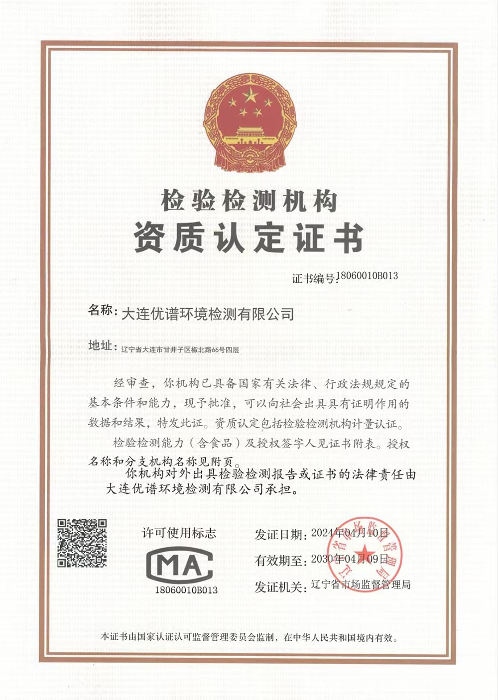 大連優(yōu)譜環(huán)境檢測(cè)有限公司是中國領(lǐng)先的第三方權(quán)威檢測(cè)機(jī)構(gòu)已取得CMA中國計(jì)量認(rèn)證資質(zhì)認(rèn)定,遼寧省生態(tài)環(huán)境廳備案,具備向社會(huì)出具公正數(shù)據(jù)的資格。擁有國際先進(jìn)的檢測(cè)分析儀器和經(jīng)驗(yàn)豐富的檢測(cè)化驗(yàn)工程師團(tuán)隊(duì)。